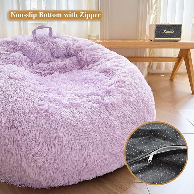 XeGe Faux Fur Comfy Bean Bag Cover for Living Room(No Filler), Fluffy Stuffed Animal Storage Bean Bag Chair Cover Light Purple, Furry Fuzzy Bean Bag Cover for Adults Kids Girls, Anti-Slip, Lavender