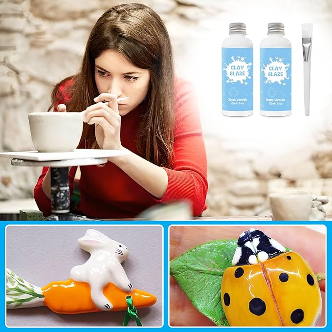 - Air Dry Clay Glaze: Clay varnish prevents air drying clay from drying out cracks, scratches, scuffs and abrasions on the clay, glaze for air dry clay is also watertight and fireproof, and dries to transparent, high gloss finish