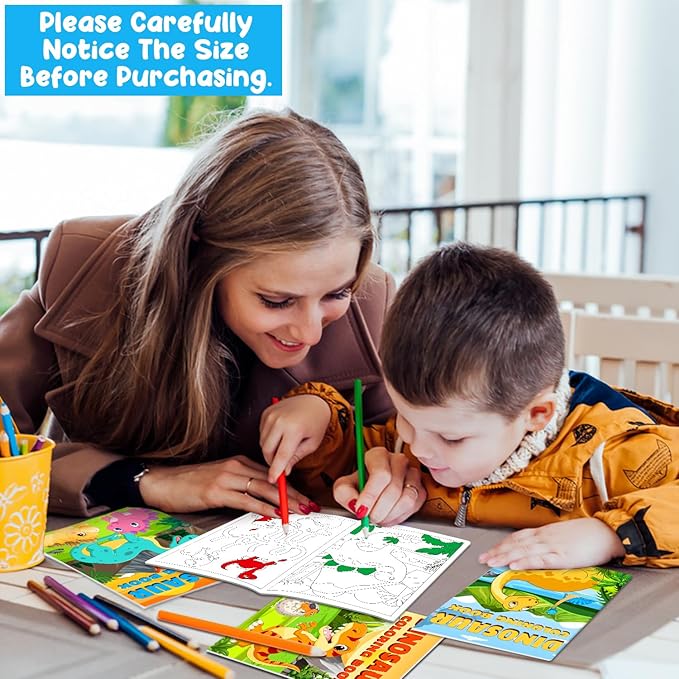 - Magical Dinosaur Theme Design: mini dinosaur coloring books are based on dinosaurs; Different dinosaur patterns can satisfy children's imagination, cultivate concentration, exercise children's color awareness, and stimulate children's interest in art activities. The dinosaur activity book includes maze fun games for developing your child's brain power and intelligence