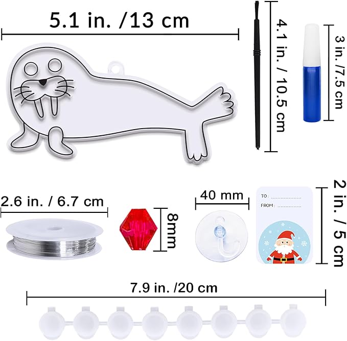 - Enhance kids' winter decorations with 33 winter polar animals and igloo suncatchers craft kit: This winter craft kit includes 33 winter polar animals and igloo suncatchers in 11 designs (3 pcs per design), 20 bottles of 10 winter paints, 1 strip of 8 empty paint pots, 33 paintbrushes, 396 beads, 1 roll of fishing thread, 60 googly eyes, 33 hooks, 33 gift stickers. This winter polar animals suncatchers paint kit is perfect for kids' winter crafts, seasonal activities, and holiday decorations.