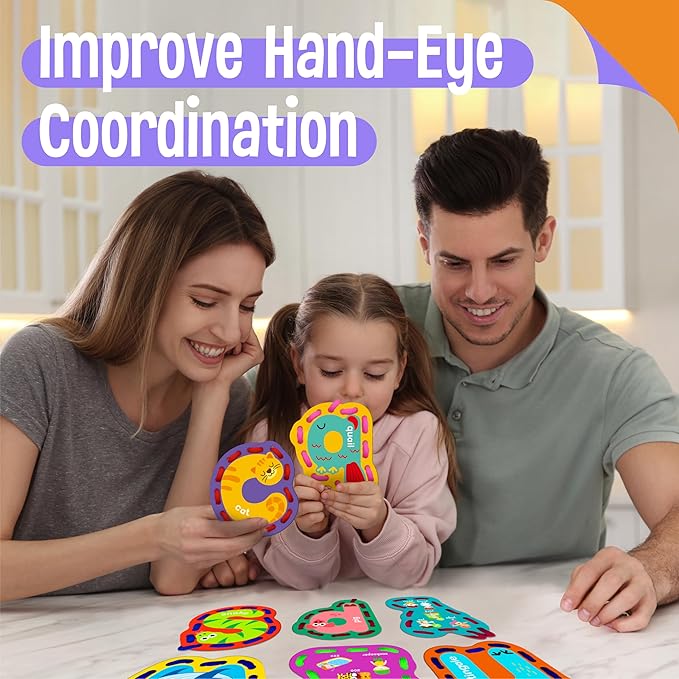- Included Components : 26 lowercase letters lacing cards, 26 colorful laces