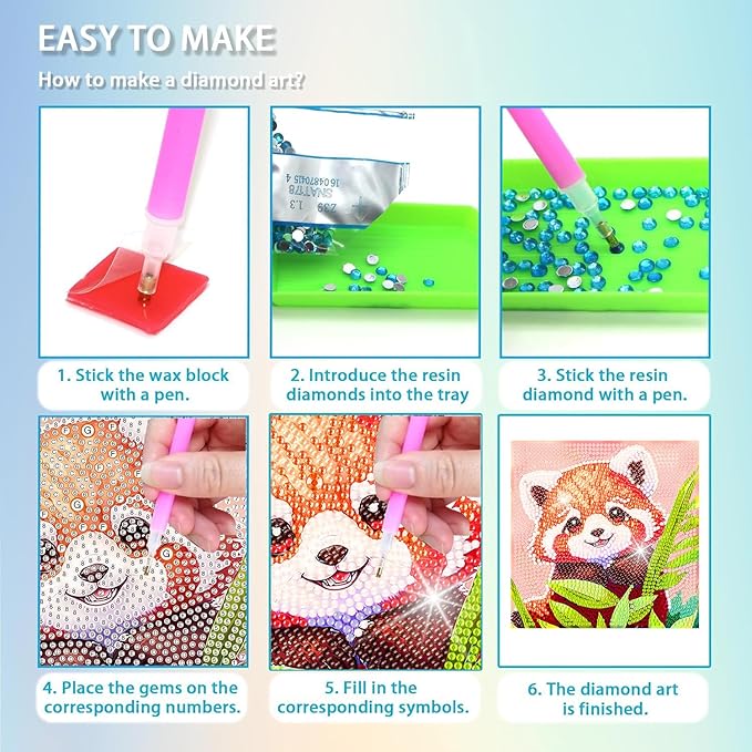 - CLEAR INSTRUCTIONS: These diamond art kits comes with easy-to-follow instructions and all the necessary tools. The package includes a canvas, applicator pen, wax, diamond pack, mapping chart, tray, and a beautifully presented box.