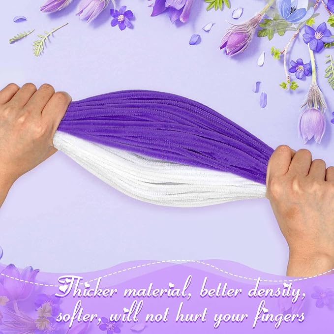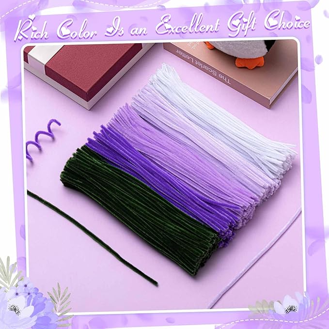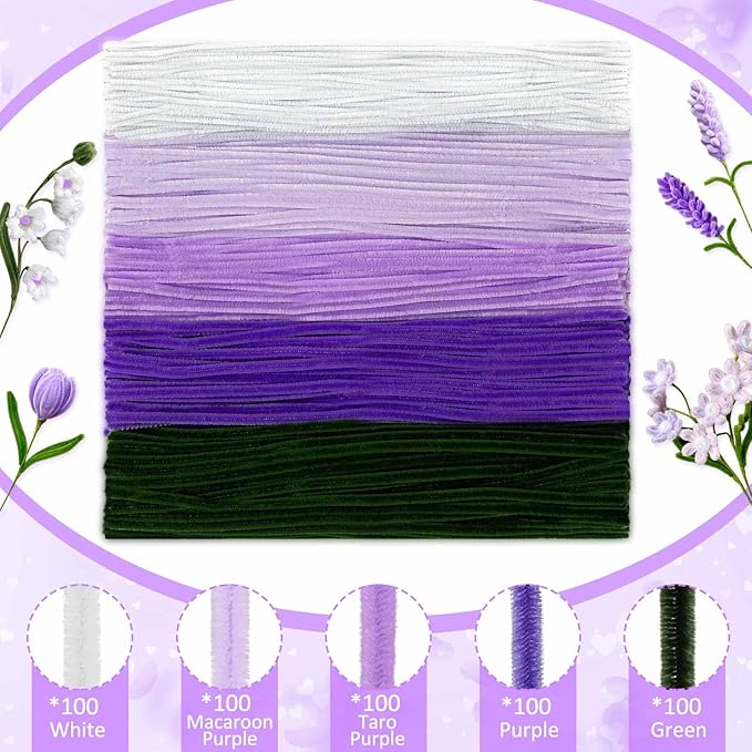 Peryiter 500 Pieces Pipe Cleaners Chenille Stems 12 Inch Craft Supplies Bulk for DIY Art and Craft Projects Creative Gift Wrapping Party Decorations(Purple Flower Color,12 Inch)