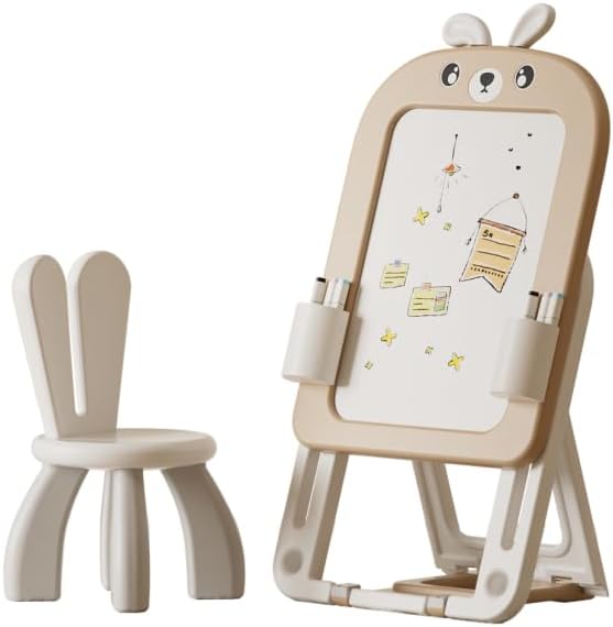 - Children's easel board comes complete with a chair, markers, and eraser, ensuring hours of entertainment for your little one. Watch as your budding artist unleashes their creativity with this fantastic easel board.