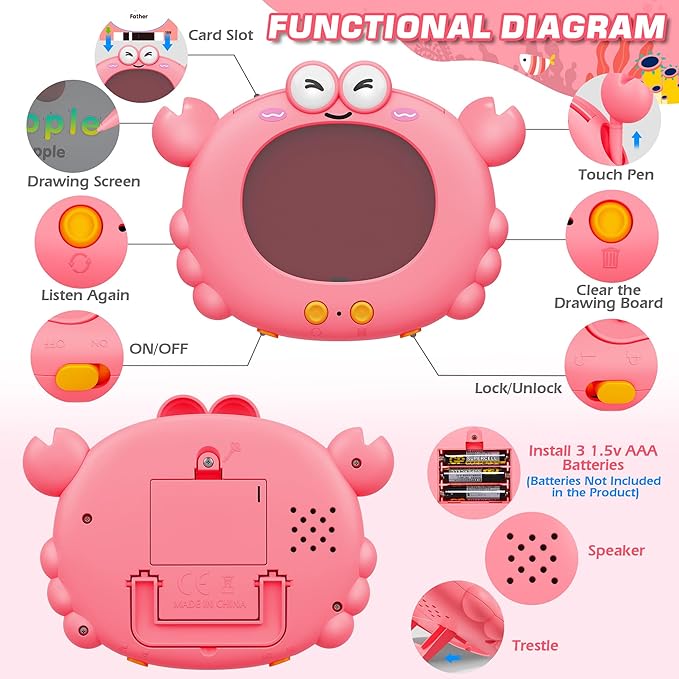 • Adorable Crab Design: Shaped like a cute crab, this toy makes learning extra fun! The right pincer detaches and becomes a pen for writing, adding a playful interactive element.