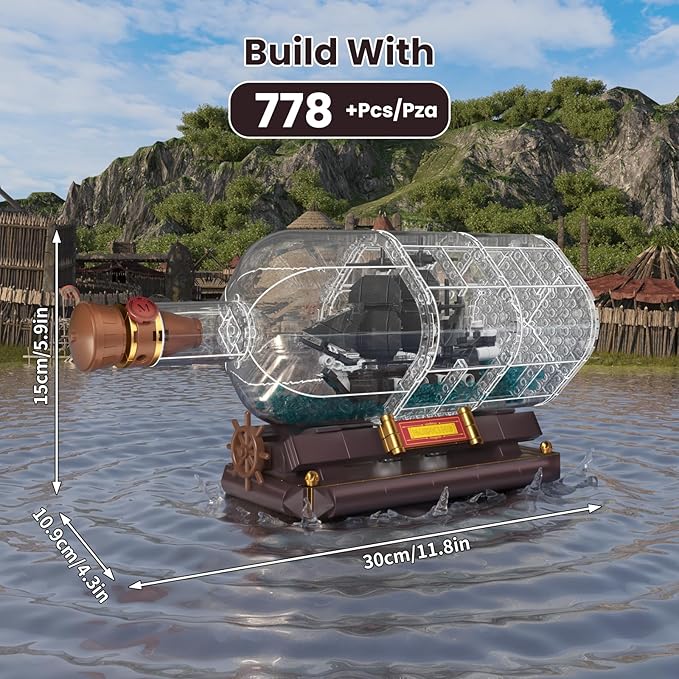 - Classic Design: This building block kit combining a drift bottle and a pirate ship, pirate and ocean elements combined into one, simulated the cork and wax seal on the drift bottle