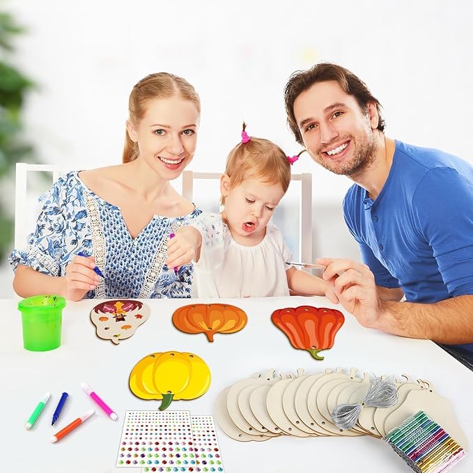 - Enhance parent-child relationship: This thanksgiving fall DIY coloring pumpkin wood craft can allow children to improve their painting and hands-on skills. It is not only an entertainment function. Making a wind chime with your children can also enhance the parent-child relationship.