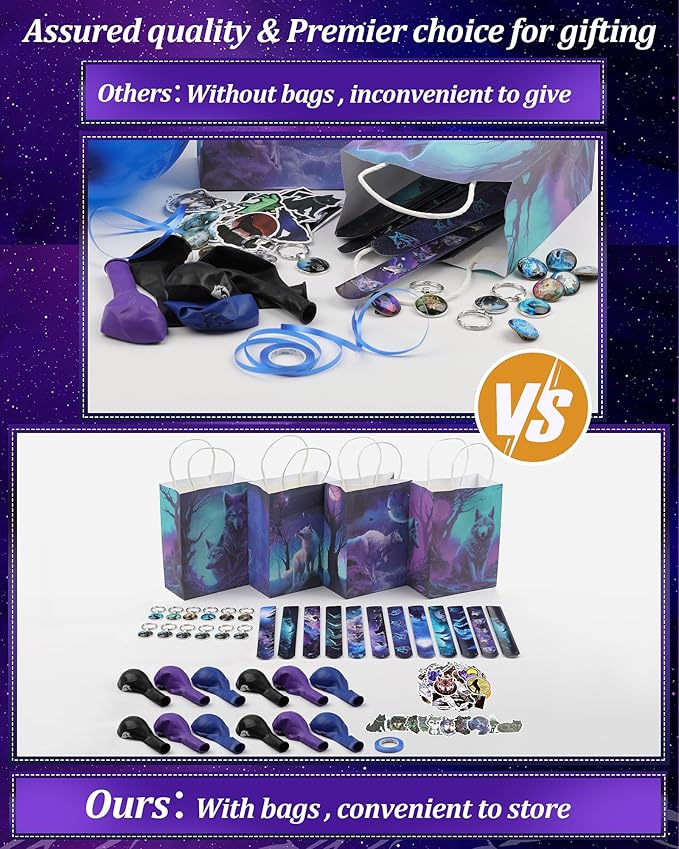 - 【The Ideal Token of Friendship】 Suitable for birthdays, Halloween celebrations, or as a token of prize, our wolf party decorations excel in conveying love and encouragement. With their captivating blend of a mystical galaxy theme and wolf decor, these charming gifts are poised to spark curiosity and joy in the hearts of children.