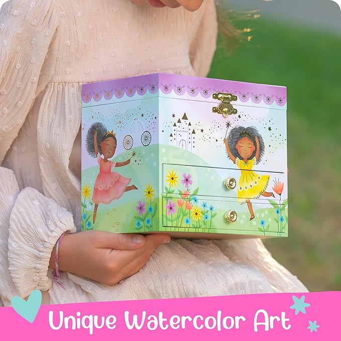 - Fine Craftsmanship - Made with sturdy pine fiberboard & tested for safety, this jewelry box for kids is built to last. The spinning ballerina music box for girls complies with all CPSIA, ASTM, and EN71 guidelines ensuring the wellbeing of any child