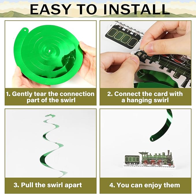 - Premium material: The train birthday party plates decoration are made of thick and sturdy cardboard that can withstand any type of food. Steam train party napkins are soft and odorless. The train banner decoration kit is made of high-quality card stock that is thick and sturdy. The train hanging swirls are made of shiny and durable PVC that won't easily break.