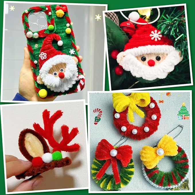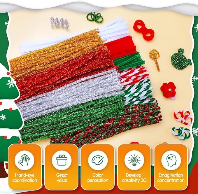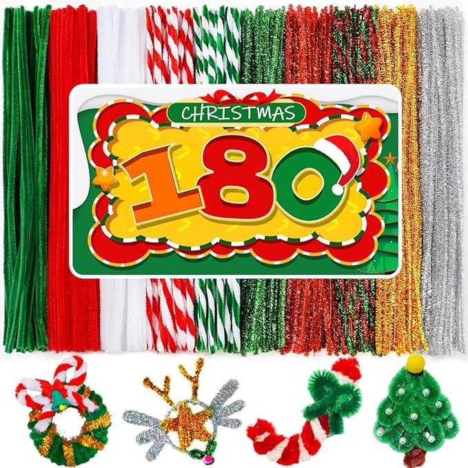180pcs Christmas Pipe Cleaners, Pipe Cleaners for Crafts, Craft Supplies Multicolor Chenille Stems for Art&Craft Christmas DIY Projects(10colors,Christmas)