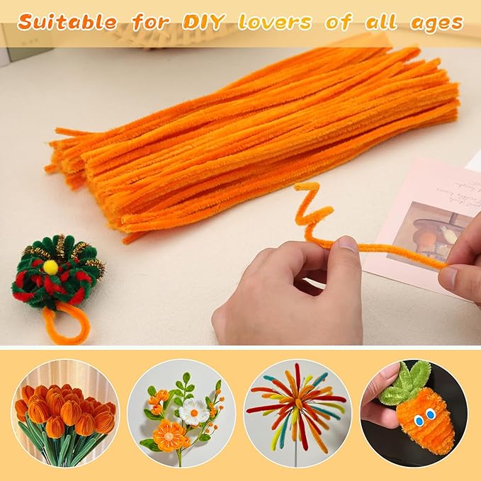 Chenille Stems Pipe Cleaners, 100 Pcs Pipe Cleaners Craft Supplies for DIY Hand Craft Arts Making, Festivals Decorations Craft/Orange