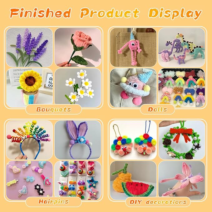 - Pipe Cleaner Crafts: These pipe cleaners for crafts are ideal accessory for craft projects such as making flowers, vegetables, animals, holiday ornaments crafts, etc.