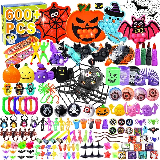 600 Pcs Halloween Party Favors for Kids, Fidget Toys Bulk, Prizes for Kids, Halloween Toys Treats Gifts, Carnival Treasure Classroom Prizes Box, Goodie Bag Stuffers, Party Toy Supplies