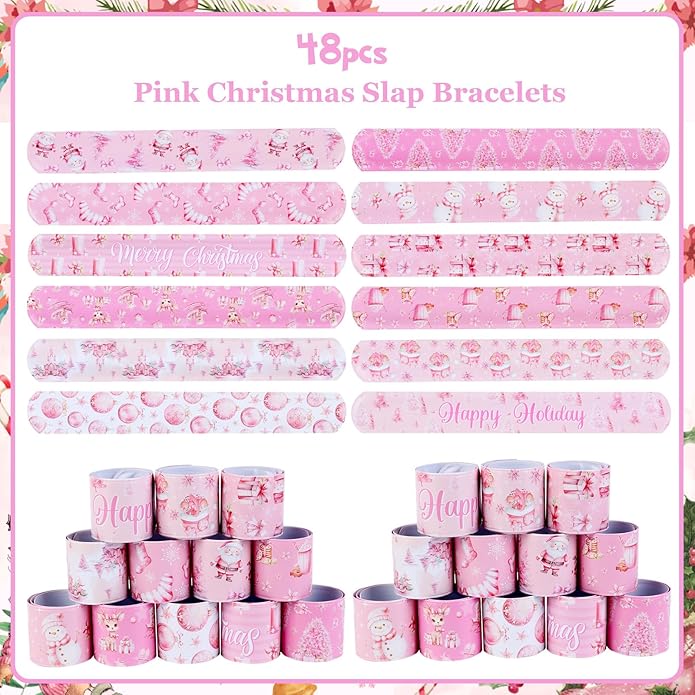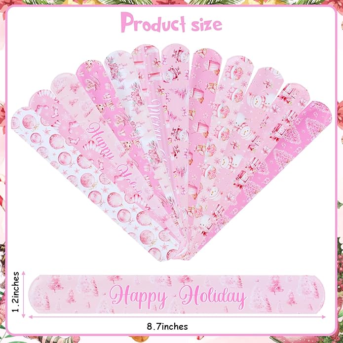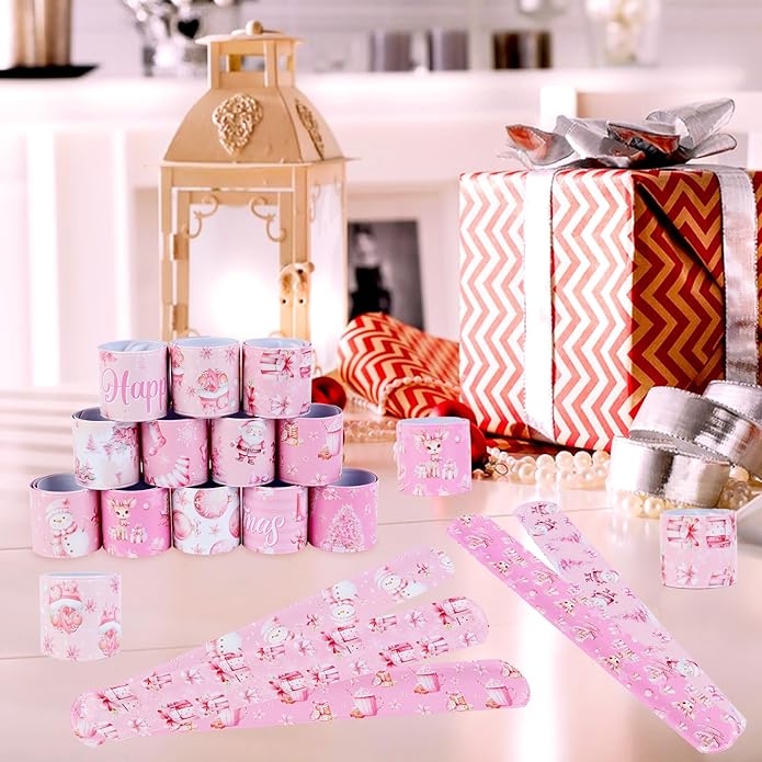 - Wide Range Of Applications: These Christmas slap wristbands are incredibly versatile, perfect for Christmas gift, Christmas party favors, gift exchanges, Christmas stocking stuffers gift, goodie bag fillers. The pink Christmas bracelets are worthy of your possession