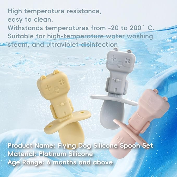 - 【Protective Barrier Design】: The robot silicone self-feeding baby spoons are designed with babies in mind. The baffle limiter can provide extra safety and prevent choking. This baby utensil set is not only suitable for baby to eat, but also prevents the baby from potential harm.