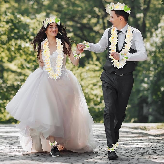 - Package includes: each Hawaiian luau flower leis set consists of 2 stunning Hawaiian lei necklace, 2 matching headband, 4 vibrant bracelets, and 4 stylish anklets; ideal for any tropical occasion, this Hawaiian garland party decorations set provides everything you need to bring a touch of island paradise to your celebration, making you look and feel festive from head to toe