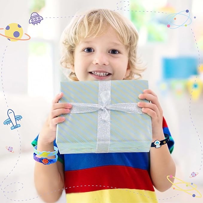 - Amazing Space Party Favors Set: Our space silicone bracelet bulk set is the ideal gift tailor-made for space lovers. Includes 24 silicone bracelets in 6 styles, each bracelet is carefully designed with a unique interstellar pattern. These bracelets not only add to the fun of the party, but are also ideal gifts to inspire children's interest in space exploration, making the party more interesting and bringing endless joy to kids boys girls