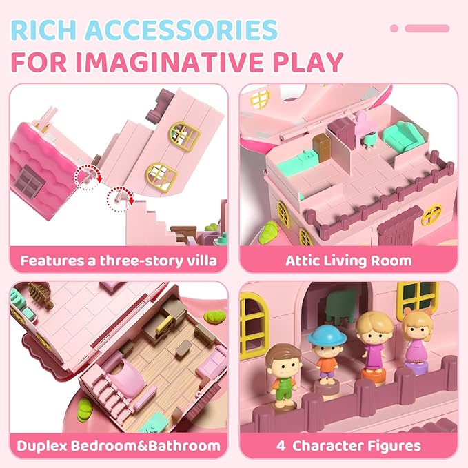 - Our dollhouse is a three layers villa featuring multiple rooms, complete with detailed furniture and 4 figures toys. Great for girls to play with their parents or friends, creating joyful memories and endless fun together