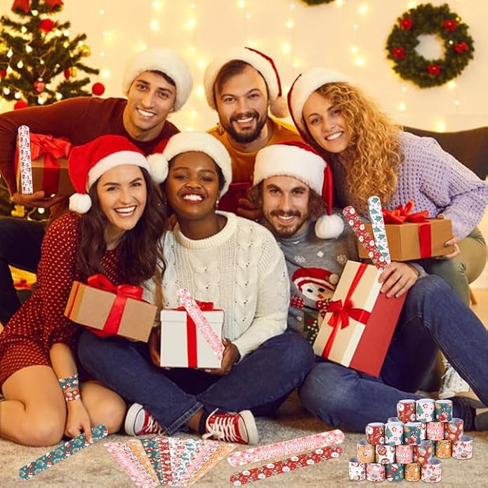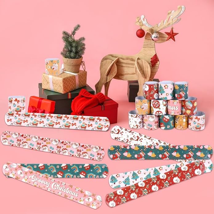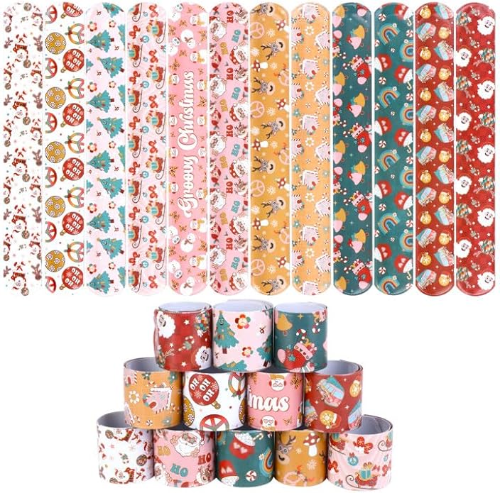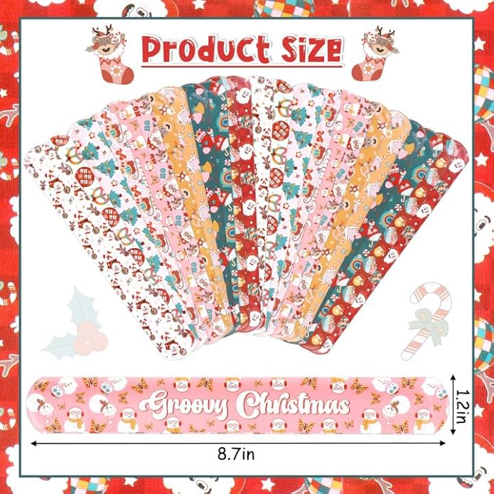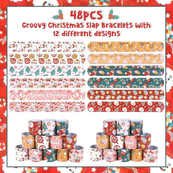 - Package Includes: 48pcs groovy Christmas slap bracelets, 12 different designs, 4 of each. Assorted styles and enough quantity, it's a perfect gift for Christmas stocking stuffers. Choose these groovy Christmas slap bracelets to make people have a deep impression on Christmas Day