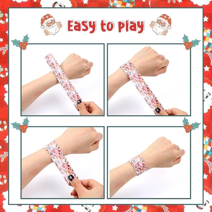 - Material and Size: Christmas slap bracelets are made of high-quality PVC and flexible material for a comfortable wearing experience. Measuring 8.7 inches in length and 1.2 inches in width, these Christmas slap bracelets conform to most wrists