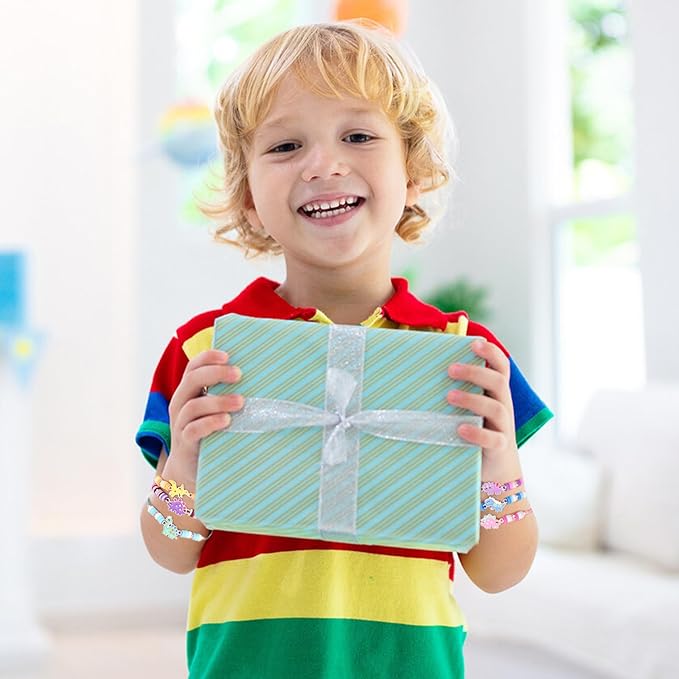 - Multiple Uses: These kids bracelets are pre-packed in individual OPP bags, which are convenient to carry and give, and are ideal gifts for boys girls birthday parties and Easter egg activities. In addition, these toddler bracelets for kids are great for Christmas stocking fillers, toddler jewelry, kids jewelry for girls, girls bracelets ages 5-7, dinosaur party favors and classroom prizes