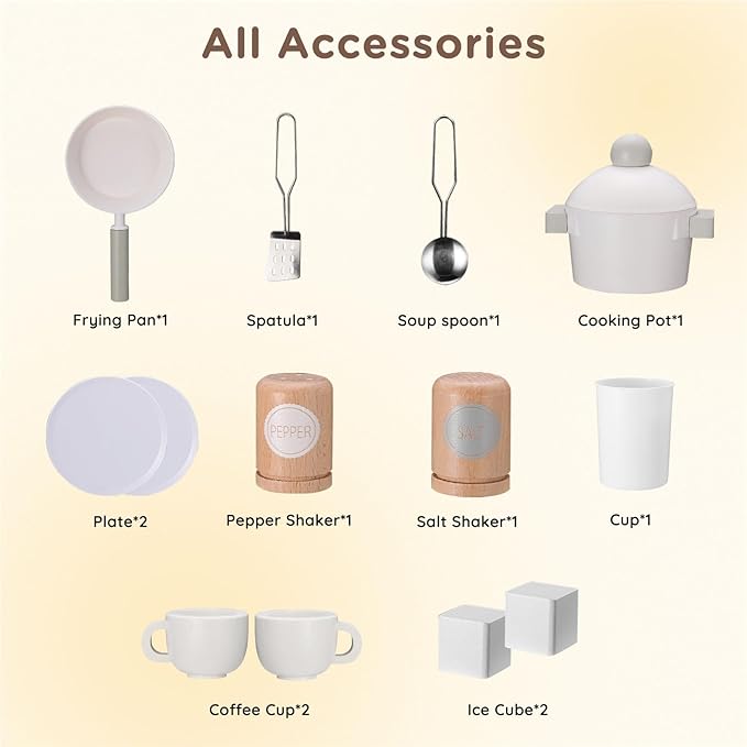 - Perfect Gift: Ideal for birthdays, holidays, or any special occasion, this wooden play kitchen set makes a wonderful gift for boys and girls who love to cook and play pretend.