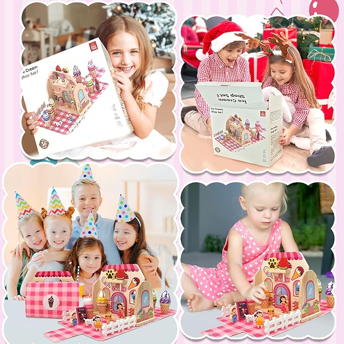 - 【Ideal Educational Gift】Ice cream set come in attractive packaging and include a variety of fun elements. They make perfect gifts for toddlers 3 4 5 6 and are ideal for birthdays, Christmas, Easter, or any special occasion. With everything they need to create their own ice cream stand, kids can dive into creative role play and enjoy endless fun.