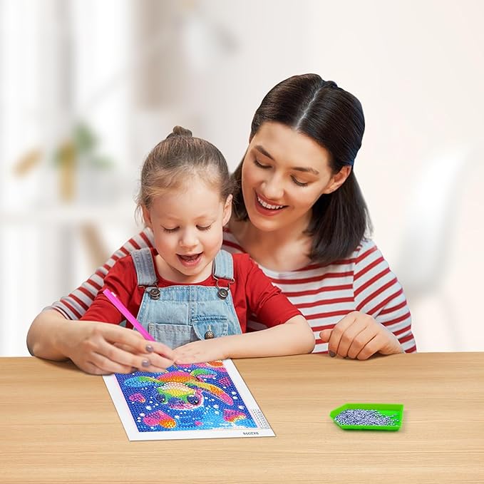 - 【Diamond Art Kits for Kids】This is a cartoon diamond art kit for kids and beginners,what is includes various colors of diamond dots ,a tray,a diamond pen,a canvas and a diamond art glue.All of those tools are the necessary parts in your diamond arts and crafts work.