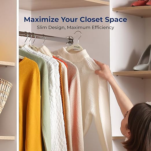 - SPACE SAVING AND ULTRA-THIN - Maximize your closet space with these space-saving Ivory closet hangers. These 0.24" ultra-thin hangers take up minimal space providing maximum hanging efficiency. Perfect for anyone looking to organize efficiently.