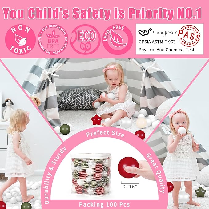 - Premium Quality: Our GOGOSO ball pits balls 100pcs stars and hearts are made made of phthalate-free, BPA-free, and non-toxic materials thicker and more durable materials, each ball capable of withstanding over 140 pounds of weight. Enjoy worry-free playtime!ensuring long-lasting fun for your kids play.