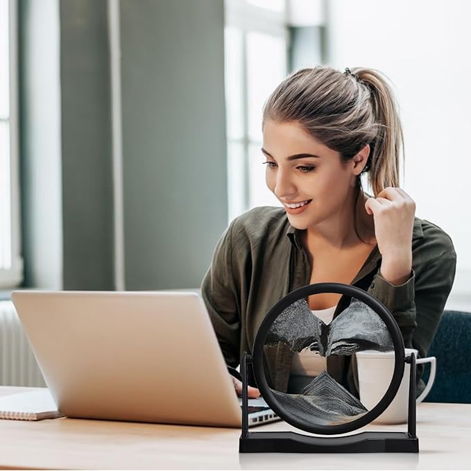 - [Office Desk Decor] Sand art liquid motion is a great office decor to place on your desk. Moving sand art can help you relieve stress and relax your eyes when you are feeling stressed out at work, making it an excellent choice for desk decor.