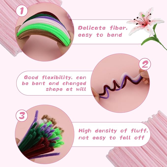 - Soft Material: These pipe cleaners are made of wire and chenille material, durable, soft, and comfortable, it can be flexibly bent into creative shapes and figures