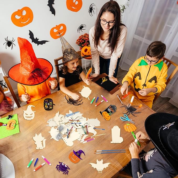 - Interesting craft: Creating a Halloween DIY coloring pumpkin craft is a delightful and enjoyable activity for kids. Paint the blank wooden wind chimes in your favorite colors and decorate them with rhinestone stickers to unleash your creativity. This activity is a fantastic way for children to express themselves and create their own unique Halloween ghost craft kits.