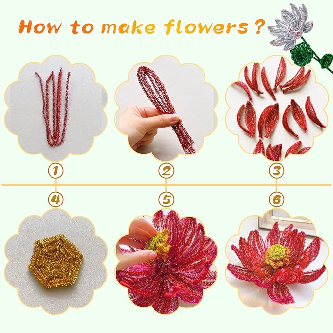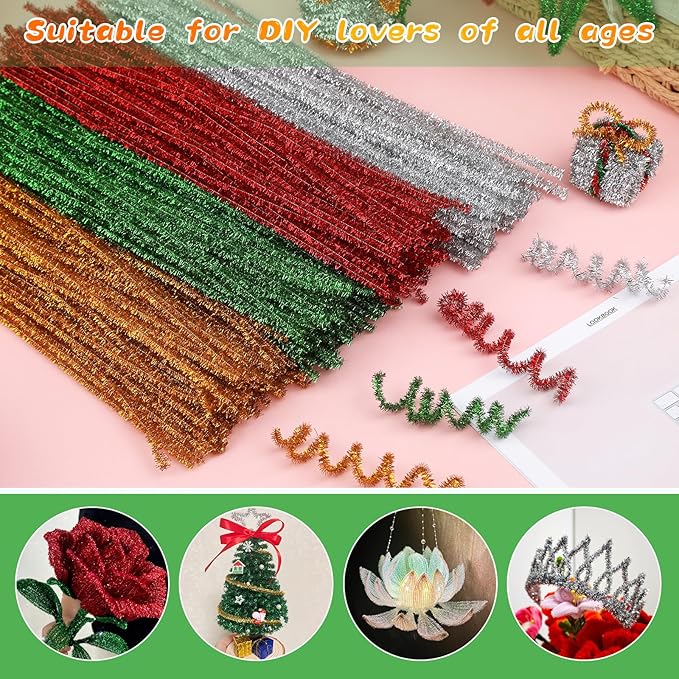 - High-quality Material: These pipe cleaners are made of metal wire and glitte, shiny, durable and not easy to break, can be flexibly bent into creative shapes and figures, and the finished product is not easy to fall apart
