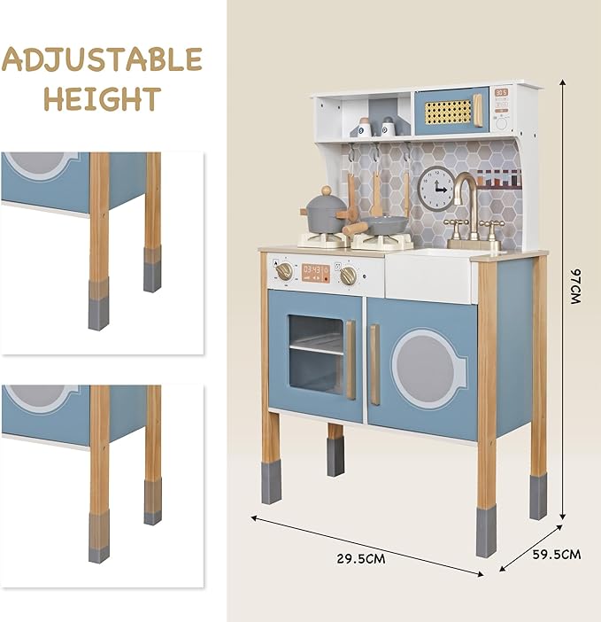 • 🎁Geat gift- Not only provides fun playtime for young children, but is also important for education. The perfect play kitchen for 3-8 year olds is ideal for creative role play toy and the perfect gift for kids.