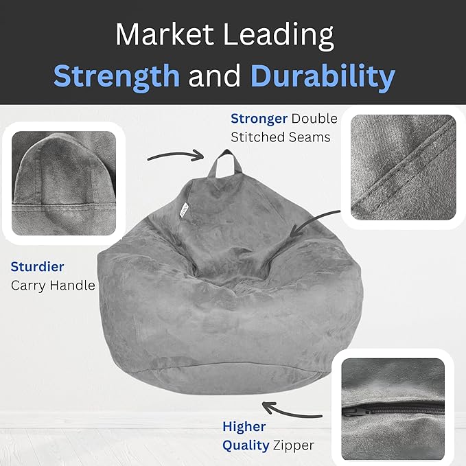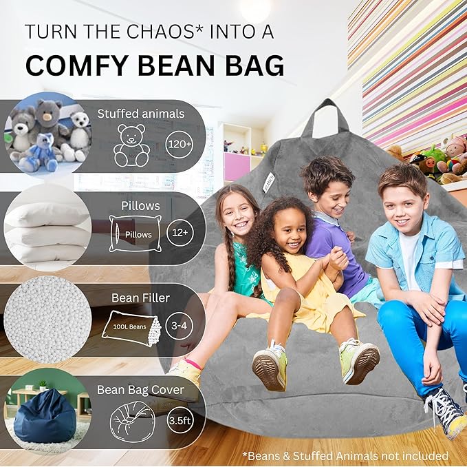 Bean Bag Chair Cover 3.5 ft (No Filler) | XL Stuffed Animal Storage | Double Stitched | Long Durable Zipper | Premium Microsuede