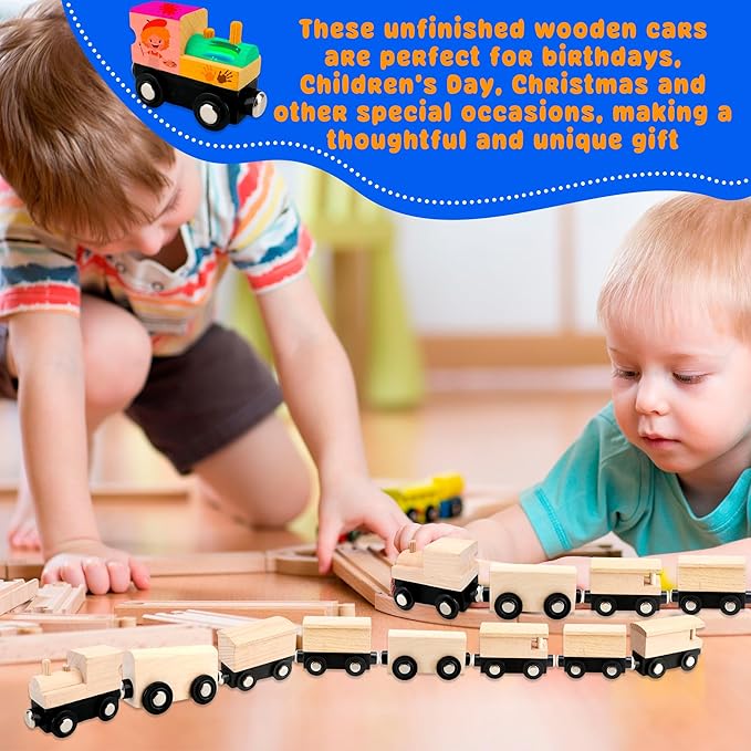 - Wide applications: these unpainted wooden trains is very suitable as a gift for birthdays, Children's Day, Christmas and other major festivals. It will allow your children to use their unlimited imagination; it can also be used to decorate train theme parties , create an on-site atmosphere