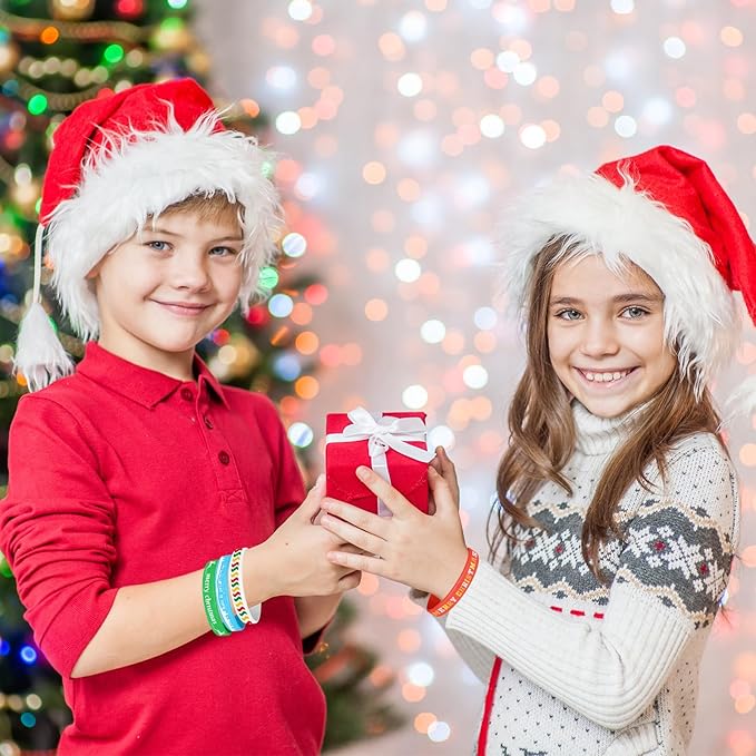 - Size: Each Christmas rubber bracelet is approx. 8 inches in circumference, 2.5 inches in diameter, and 0.5 inches in width, can fit with most teens and adults