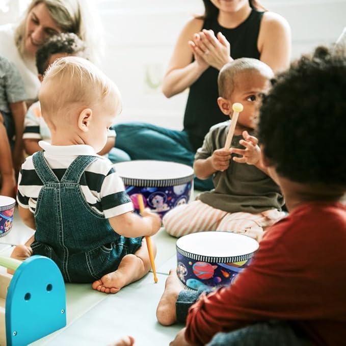 - Cute Design:Children's percussion drum is surrounded by colorful patterns with the theme of space astronauts,adding cute animal elements such as rabbit,panda,dinosaur,fox,dog and unicorn.Just like attending a party in galaxy space,which is very lively and interesting