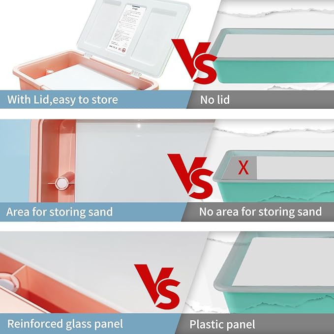 - ๐บ ๐๐ฉ๐ ๐ซ๐๐๐๐ ๐๐๐ฌ๐ข๐ ๐ง:Our sand art box comes with a lid that prevents sand spills for easy storage and organization.The light Table has two sand storage spaces and comes with a broom and dustpan for easy use and cleaning.
