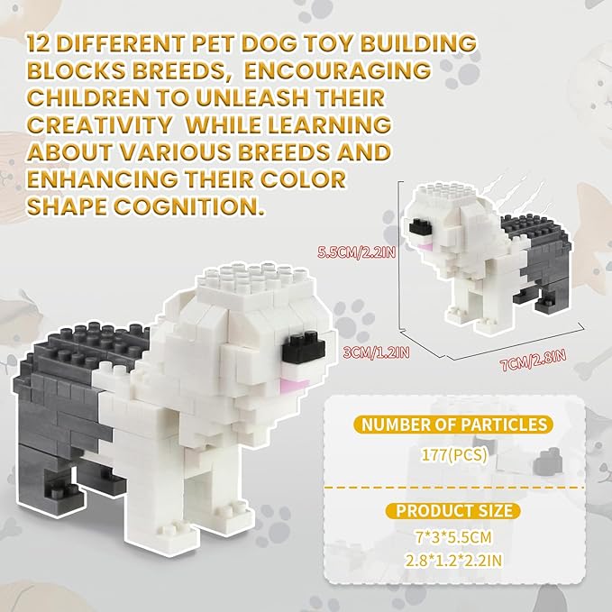 BOROLA Pet Dog Building Blocks Set Educational Toy Realistic Fun Animal Assembly Kit Toys Games(Old English Sheepdog Blocks)