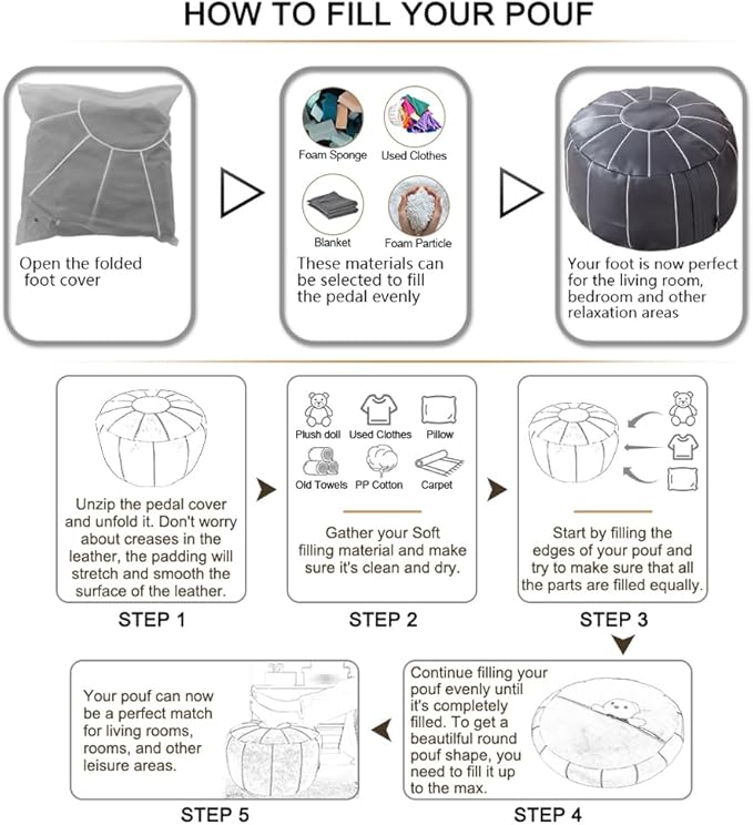 - Eco-friendly Pouf Cover: Easily recycled or stuffed with old clothes/toys, reducing waste. Portable design perfect for outdoor adventures, promoting sustainable living.