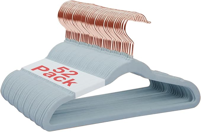 Baby Velvet Hangers, 52 Packs Kids Clothes Hangers, Non-Slip Childrens Hangers with Shoulder Notches, Storage Organizer Clothing Hangers for Infant and Toddler Blue (Rose Gold Hook)