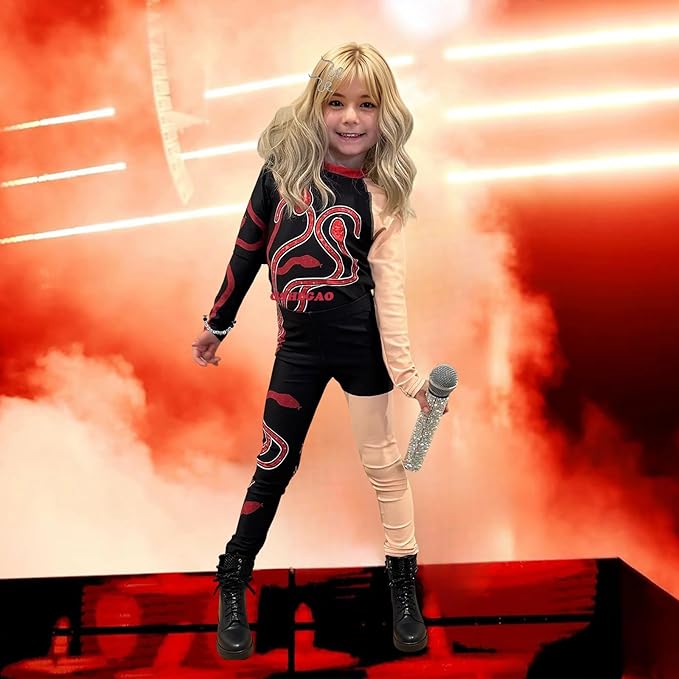 - 【Rep Costumes Design】: Inspired by the charisma style of global pop singer and concert outfit.Super music star world tour concert dressing red snake bodysuit. If your kid is a TayTay fans, she must be ask to wear it everyday.(with the sparkles on the red snake )