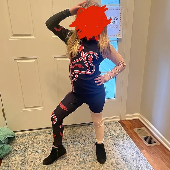 - 【Perfect Snake Outfit】: Girls fashion singer fans inspired 2 Piece (featured with red snake pattern is printed on) +rep bracelet , Completes the rep look with the leotard and leggings! Designing the exposed arms and legs of the clothes into flesh-colored sleeves and trouser legs is more suitable for our little fans and is also warmer in cold weather