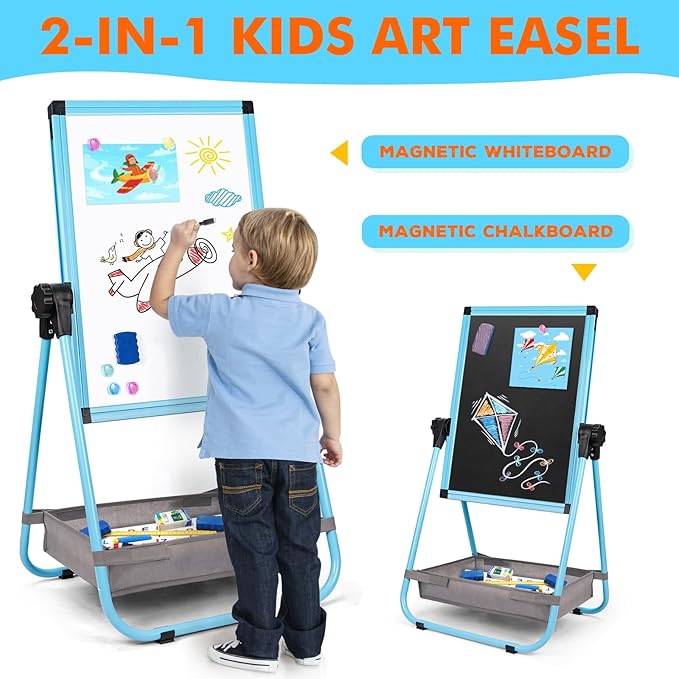 • Multi-Purpose: This kids easel features a double-sided magnetic whiteboard and blackboard for kids, providing a multifunctional surface for creative expression and learning. It also supports paper roll painting so kids can doodle at will