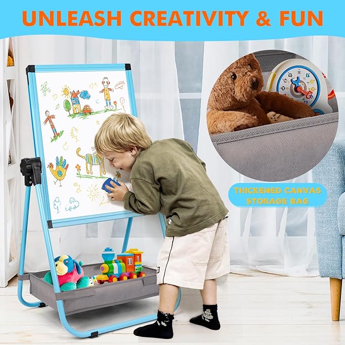 - Multi-Purpose: This kids easel features a double-sided magnetic whiteboard and blackboard for kids, providing a multifunctional surface for creative expression and learning. It also supports paper roll painting so kids can doodle at will