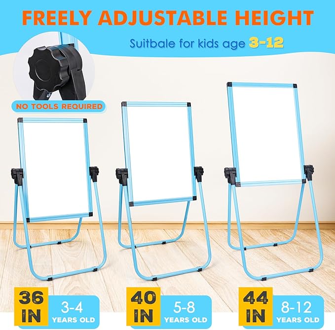 - Adjustable Height: Our art easel for kids easel can freely adjust its height from 22" to 44", growing with kids ages 2-4 4-8 9-12. The toddler easel for kids is ideal for children's word spelling, number counting, artistic drawing, math games
