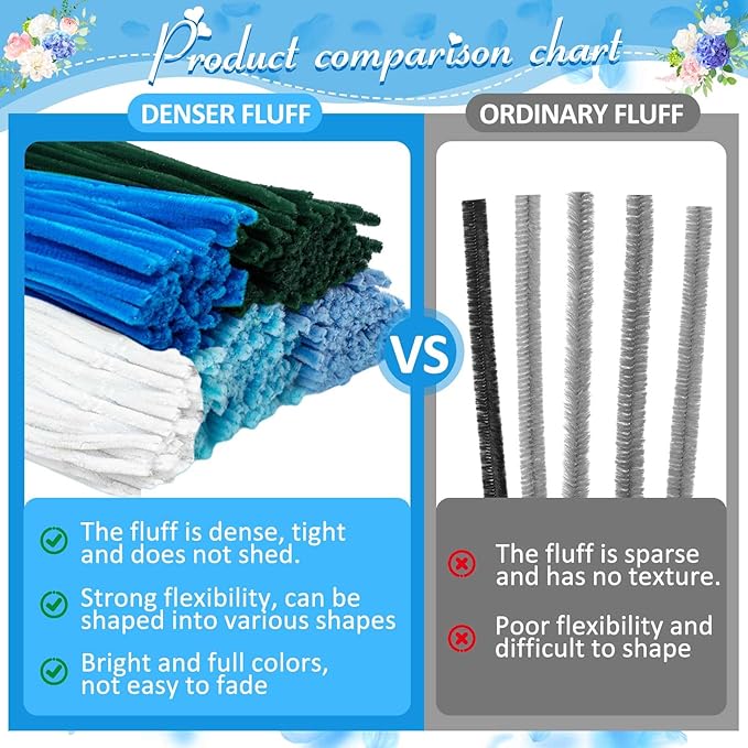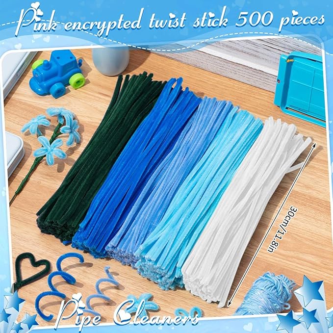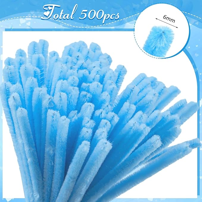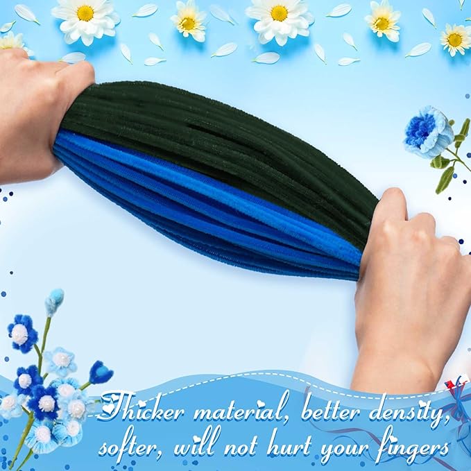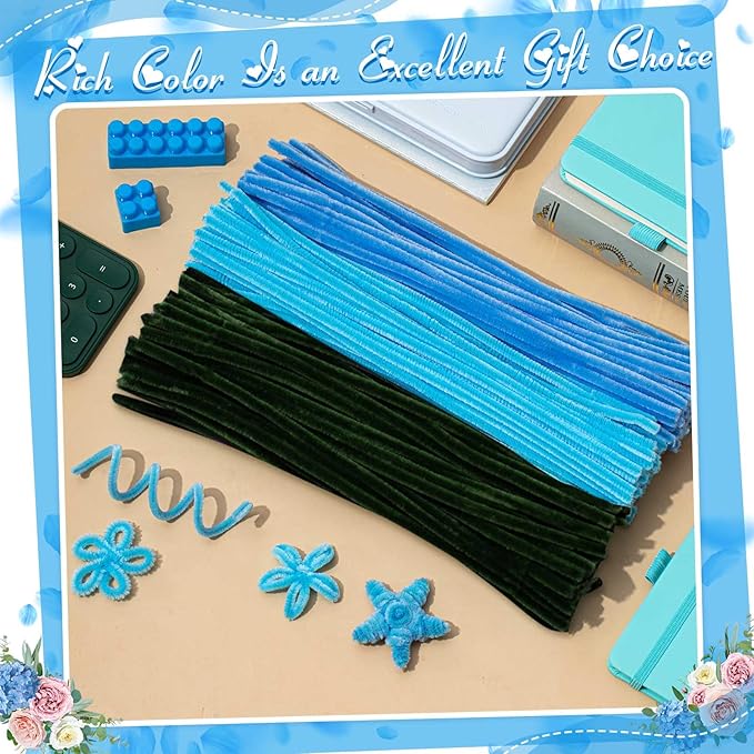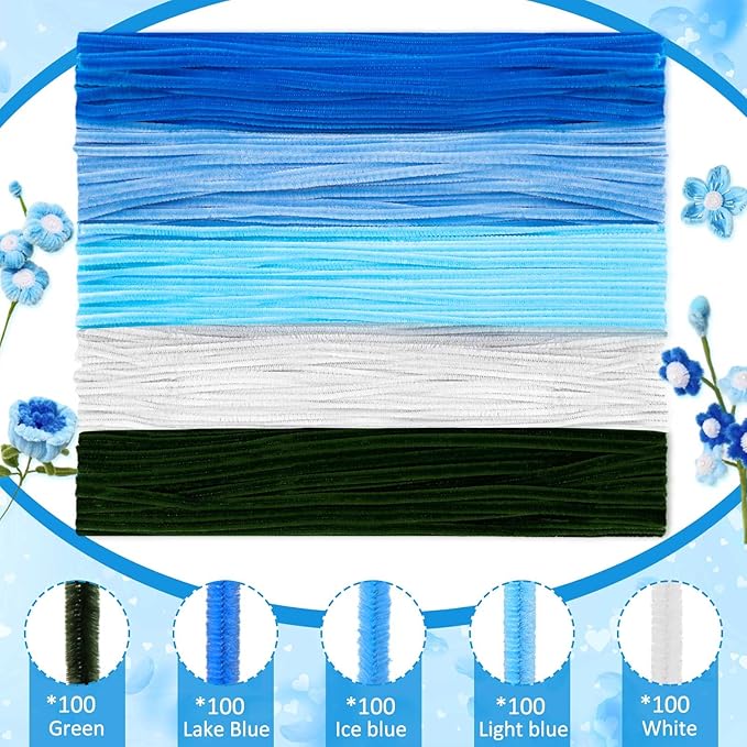 Peryiter 500 Pieces Pipe Cleaners Chenille Stems 12 Inch Craft Supplies Bulk for DIY Art and Craft Projects Creative Gift Wrapping Party Decorations(Blue Flower Color,12 Inch)